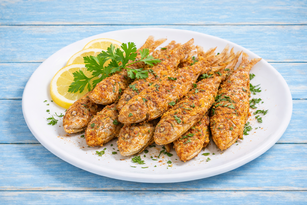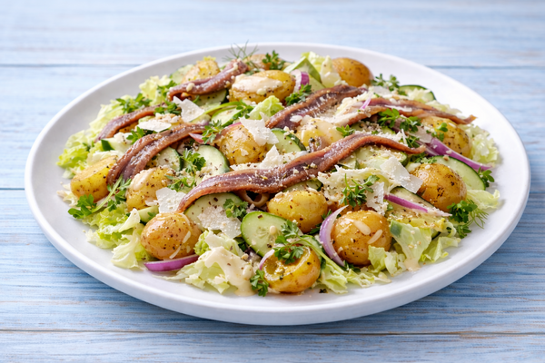 Анчоусы с чесночным соусом и картофелем