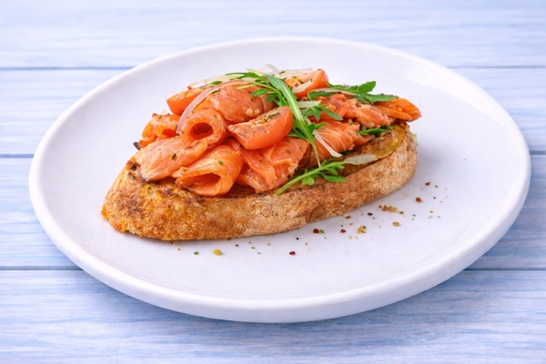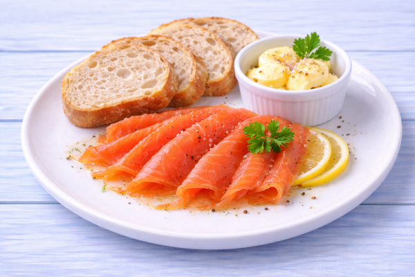 Семга слабосоленая с маслом, чиабатта.