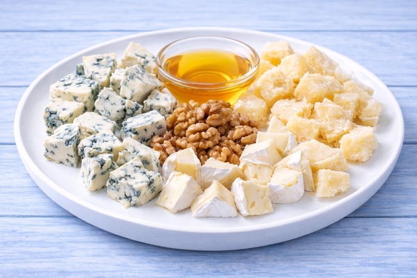 Ассорти сыров Дор Блю, Камамбер, Пармезан, грецкий орех и мед.